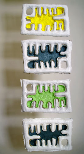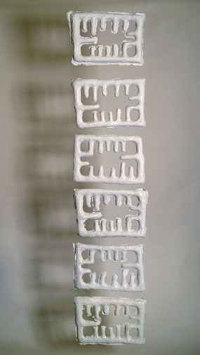 My cast paper reliefs are constructed by a process of casting paper pulps into plaster moulds.